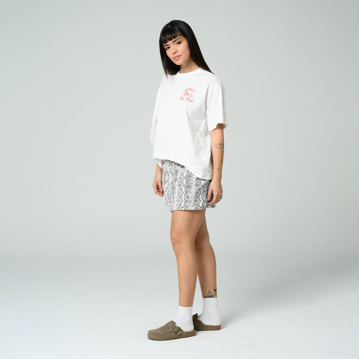 -Falda corta -silueta ajustada -talle medio -tejido plano estampado pitón