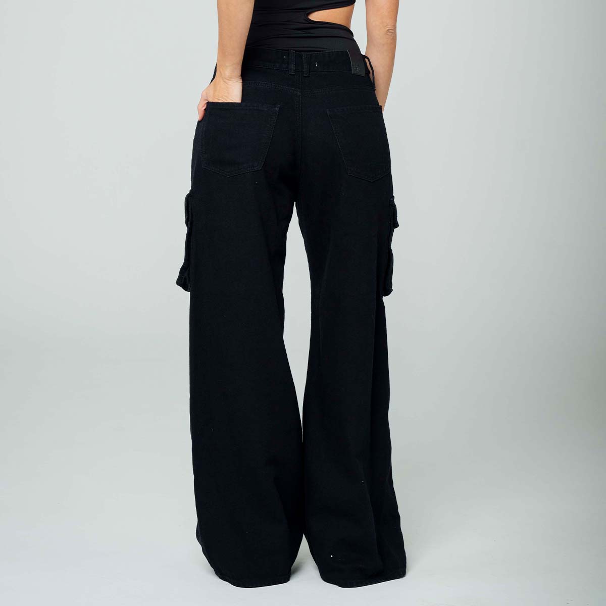 -Pantalón dad fit tipo cargo -talle medio -bota amplia -bolsillos en los laterales -Proceso de desgaste en lavandería -Tejido plano 100 algodon