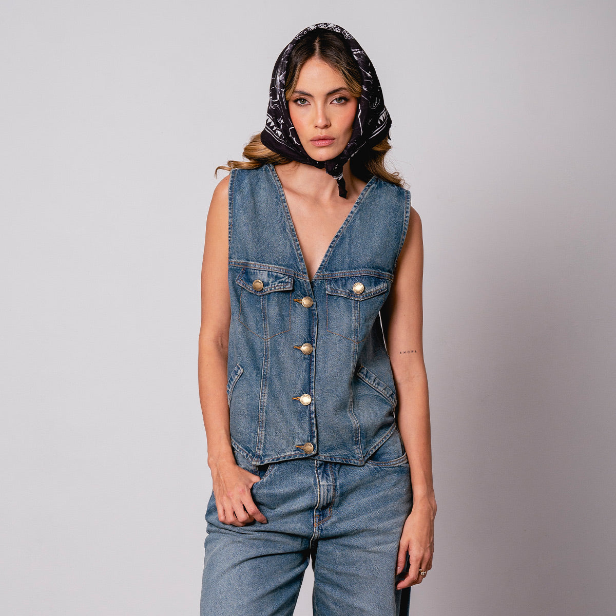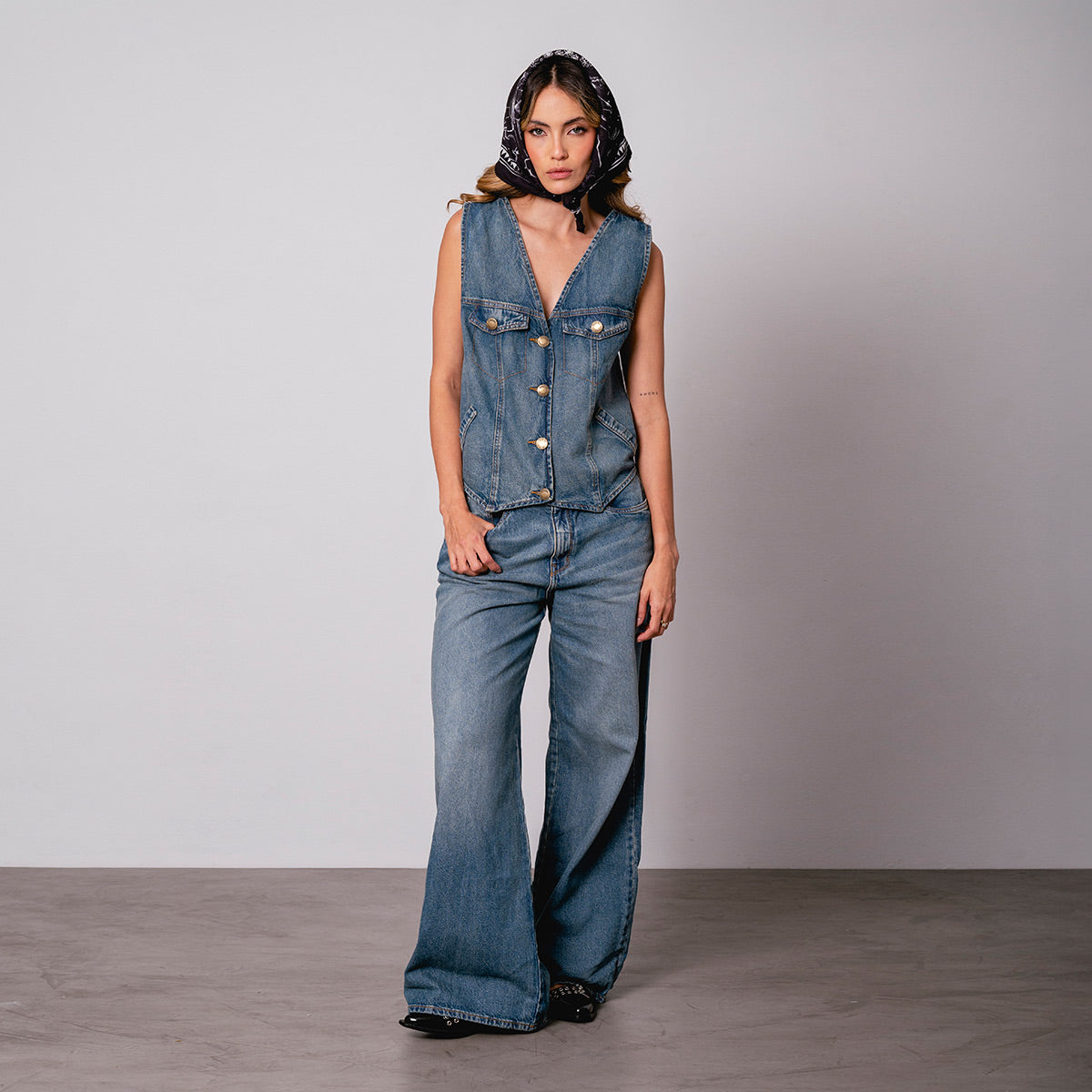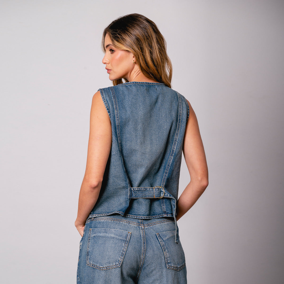 -Chaleco -Silueta Semi amplia -Largo A La Cadera -Escote V -Botones En Frente -ajustable en el posterior -proceso de lavandería -tejido plano 100 algodon