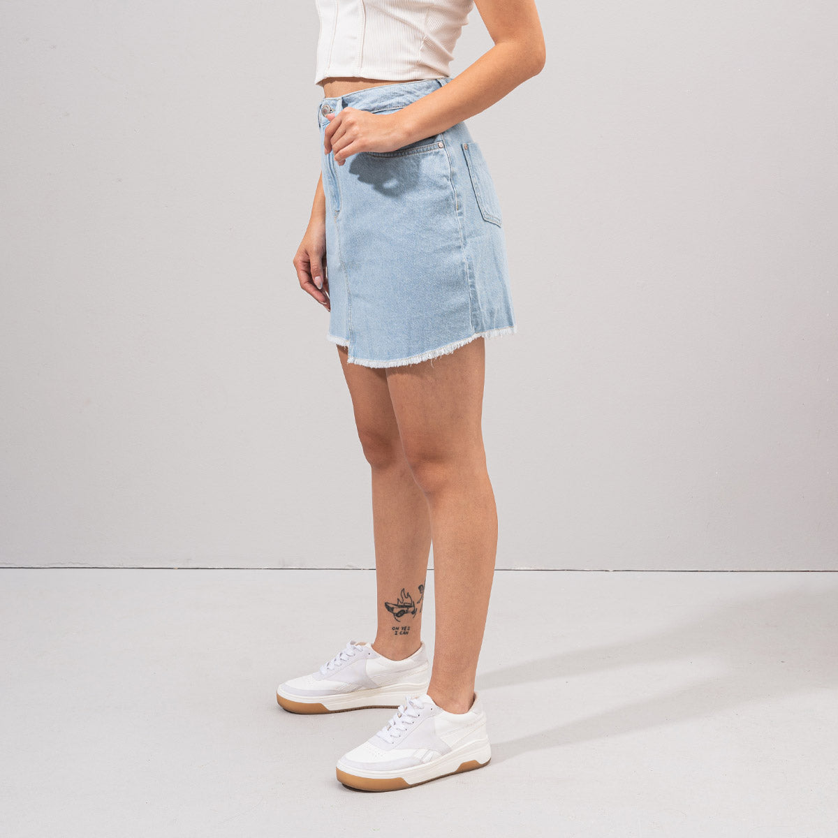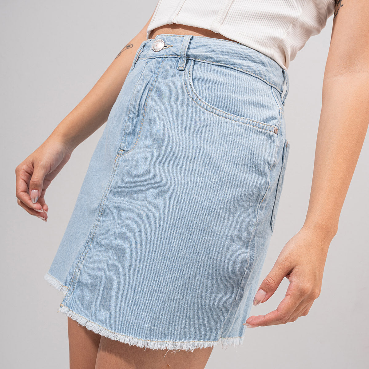-Falda Talle alto -Tono medio -Con ruedo asimetrico al corte -Tejido plano 100 algodon