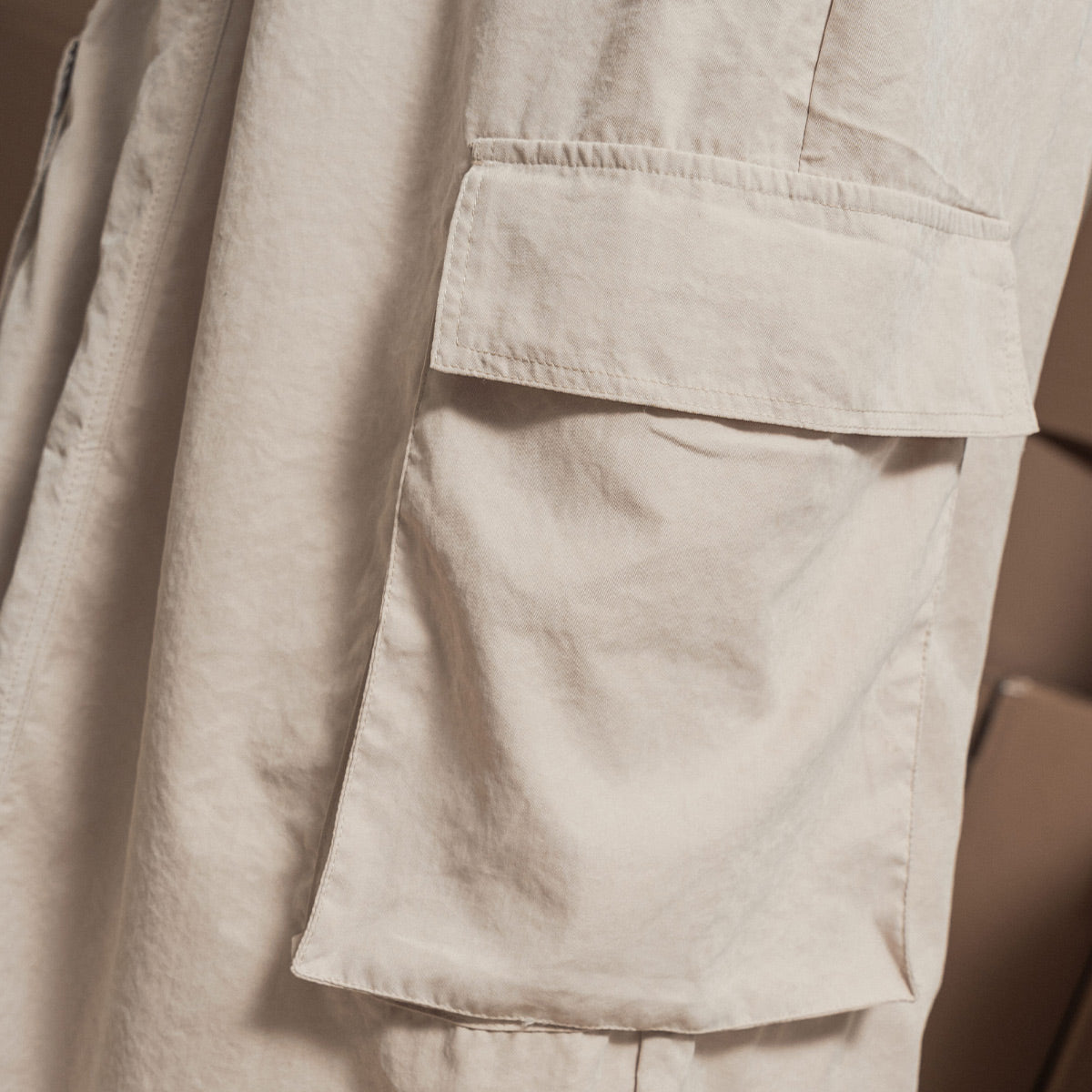-Falda Larga Parachute -Talle Medio -Silueta Semi Amplia -Bolsillos Laterales -Pretina Ajustable Con Elastico -Tejido Plano -Color Caqui