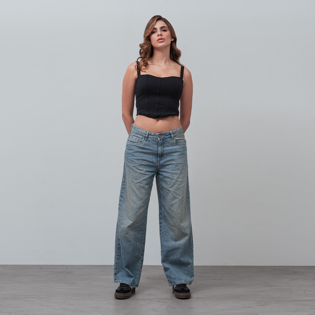 -Blusa de tiras -silueta ajustada largo medio -cortes tipo corset -tejido de punto con elongacion -color negro