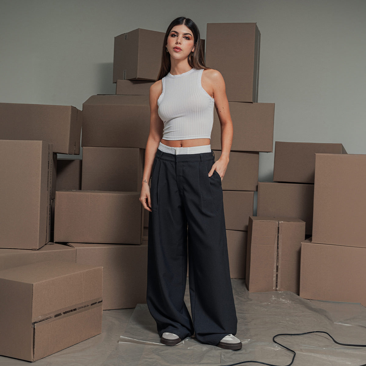 -Blusa basica manga sisa -Silueta ajustada -Largo crop -Ruedo curvo -Tejido de punto Rib -Color blanco