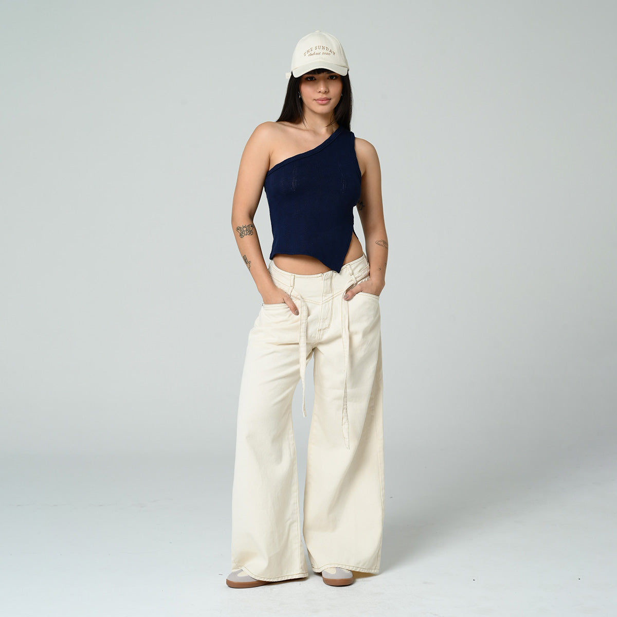 -Blusa a un solo hombro -Silueta ajustada -largo medio -tejido de punto -color azul