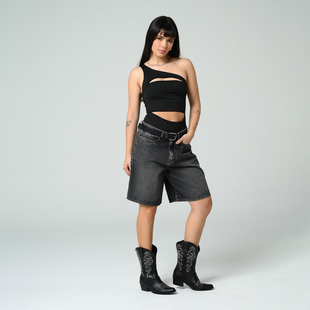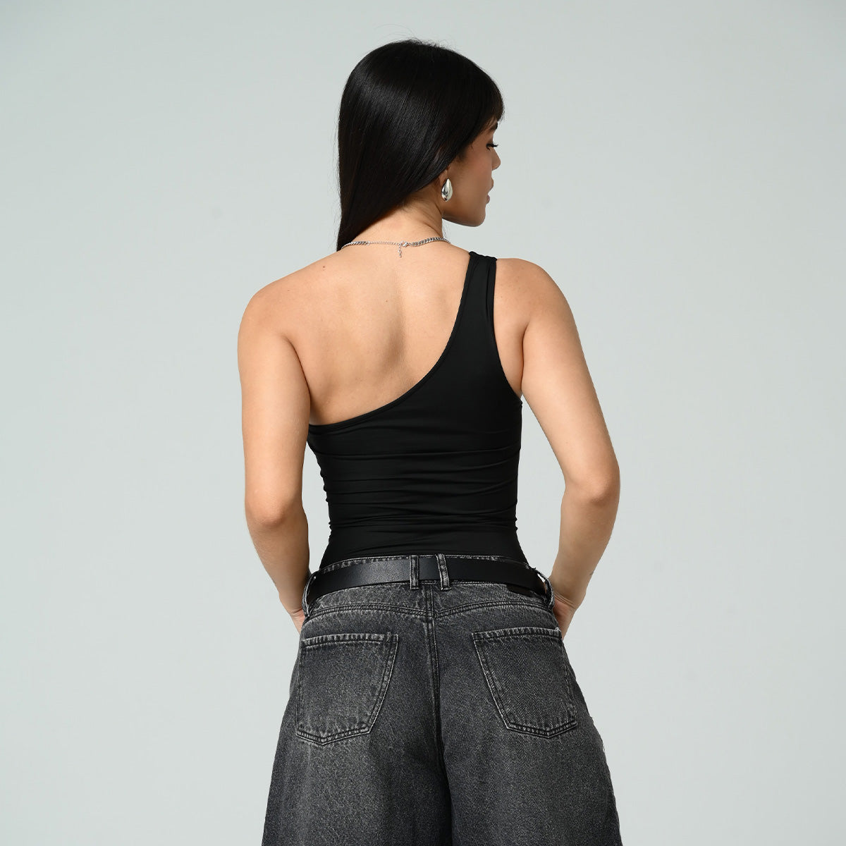-Body A Un Solo Hombro -Silueta Ajustada -Aberturas En Frente -Tejido De Punto -Color negro