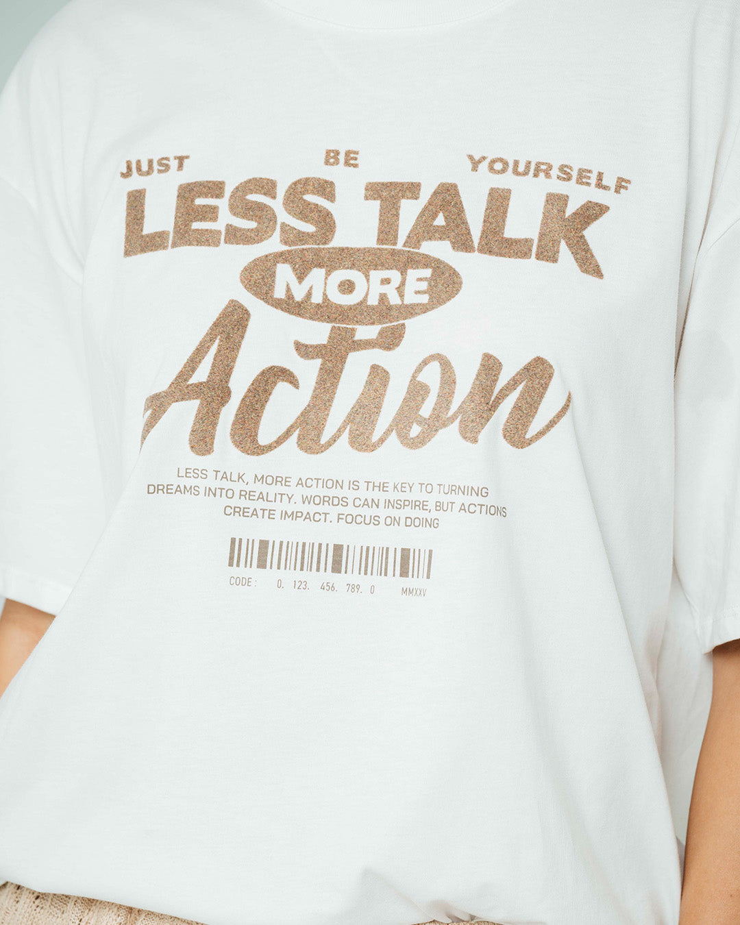 -Camiseta manga corta -cuello redondo -silueta oversized -Estampado en frente -tejido de punto 100 algodón -color Ivory