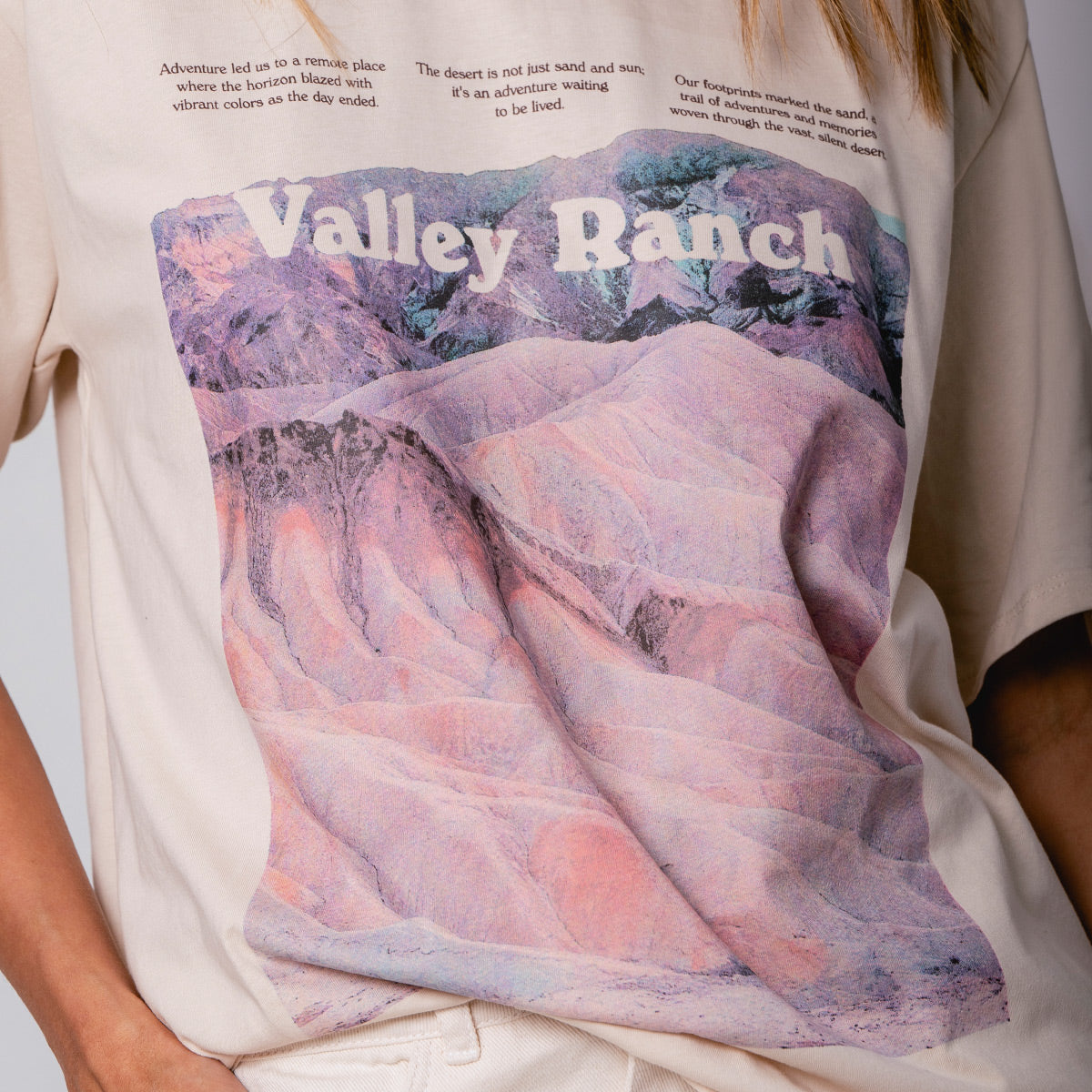 -Camiseta Oversize -Silueta amplia -largo a la cadera -cuello redondo -estampado en frente -tejido de punto -color caqui