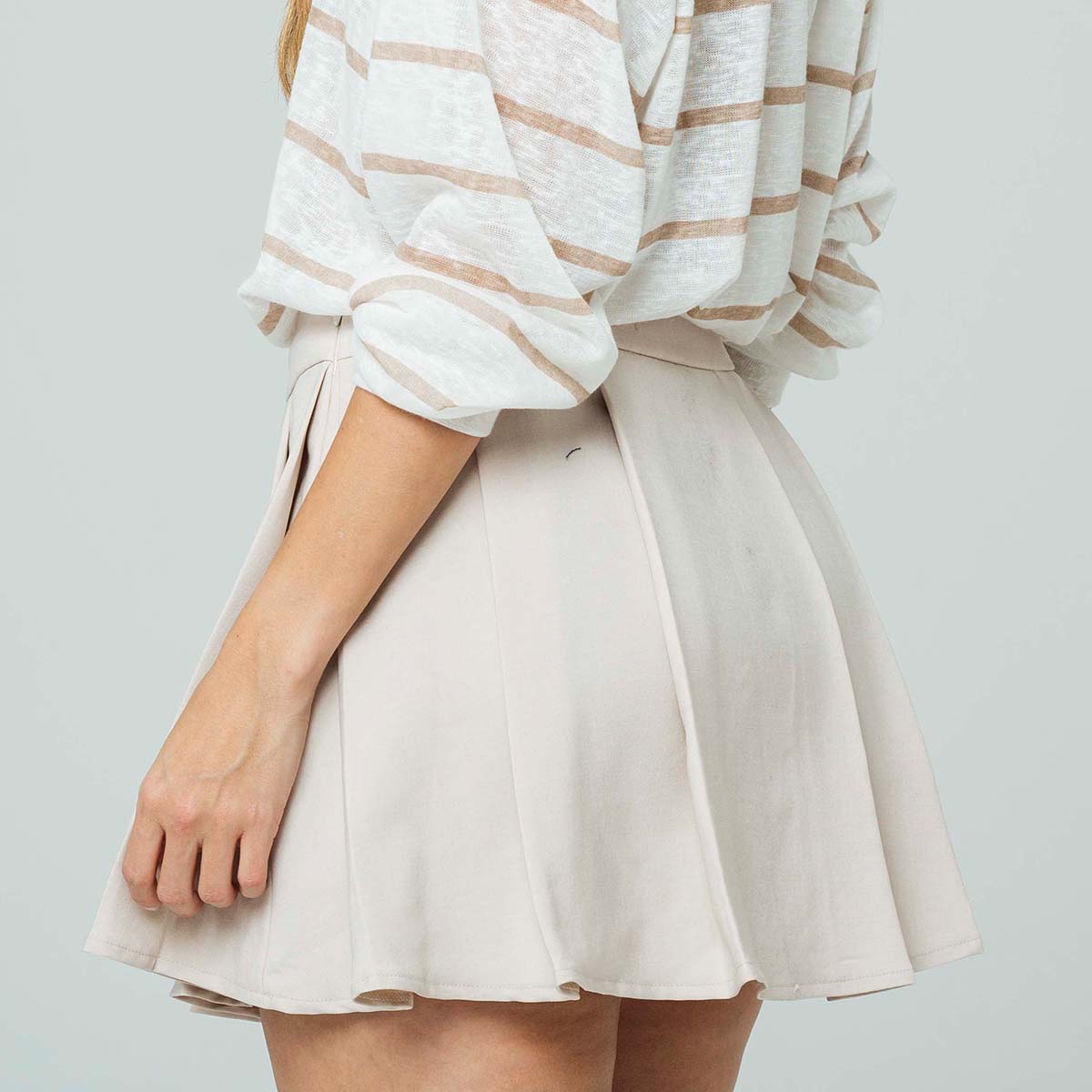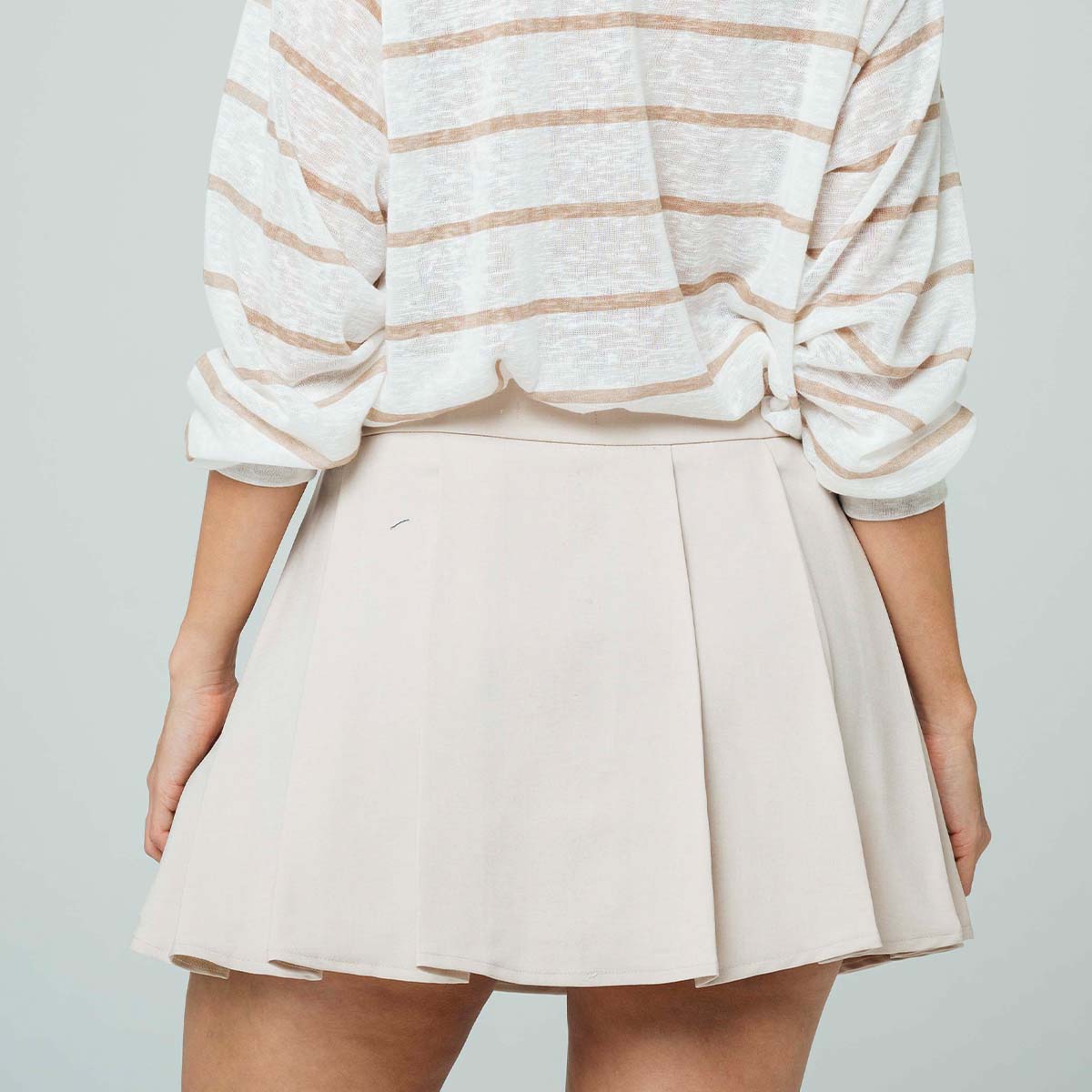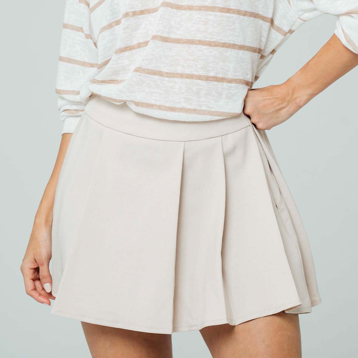 -Falda corta de tablas -Talle medio -silueta semi amplia -tejido plano -Color caqui