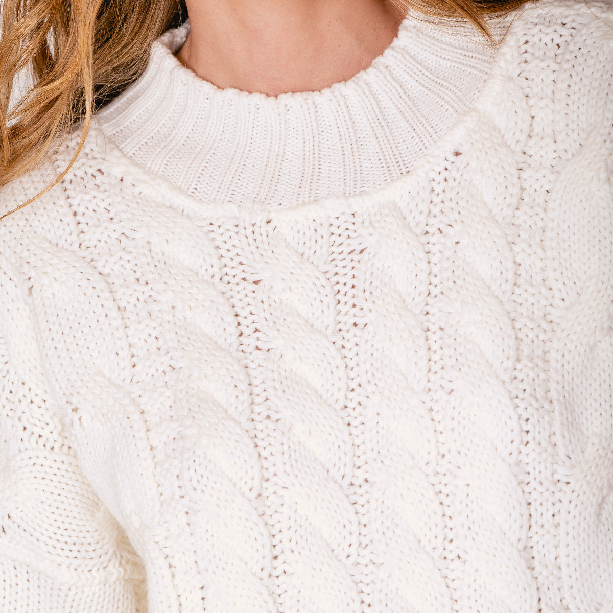 -Sweater -Silueta Semi Amplia -Largo Medio -Tejido Rectilíneo -Color Blanco