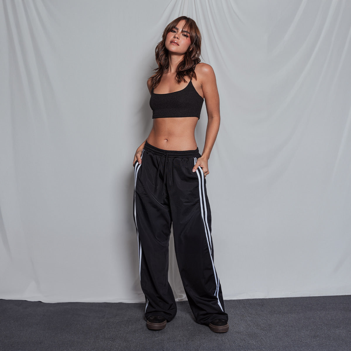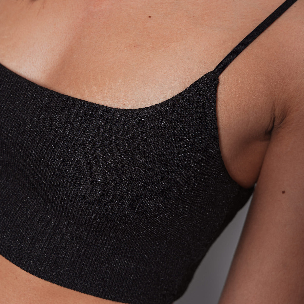 -Top de tiras -Silueta ajustada -Escote redondo -Tejido de punto -Color negro