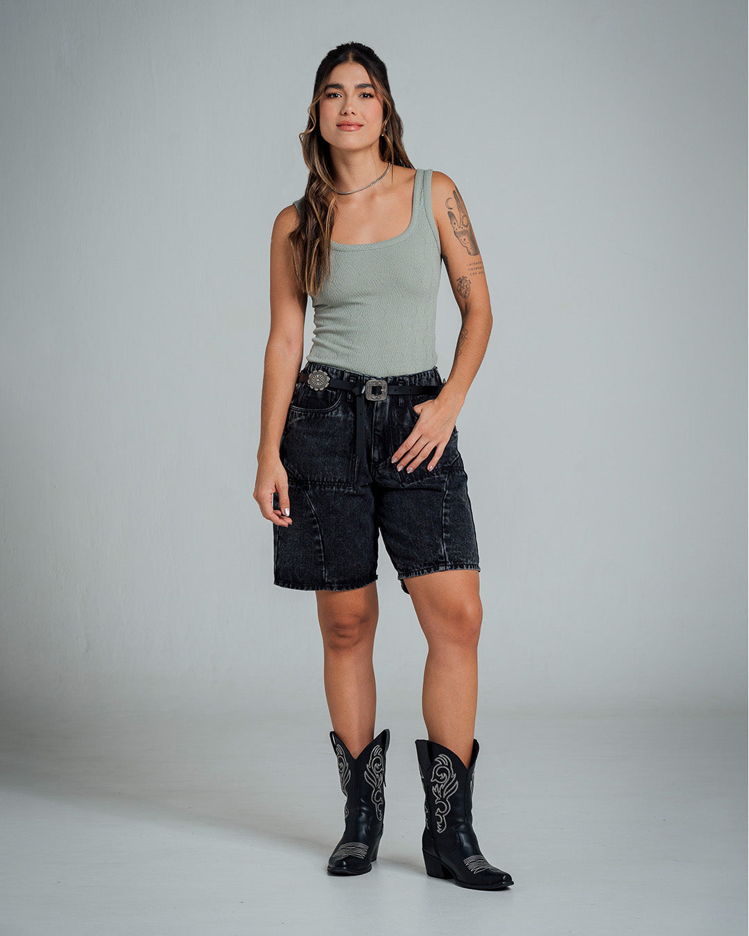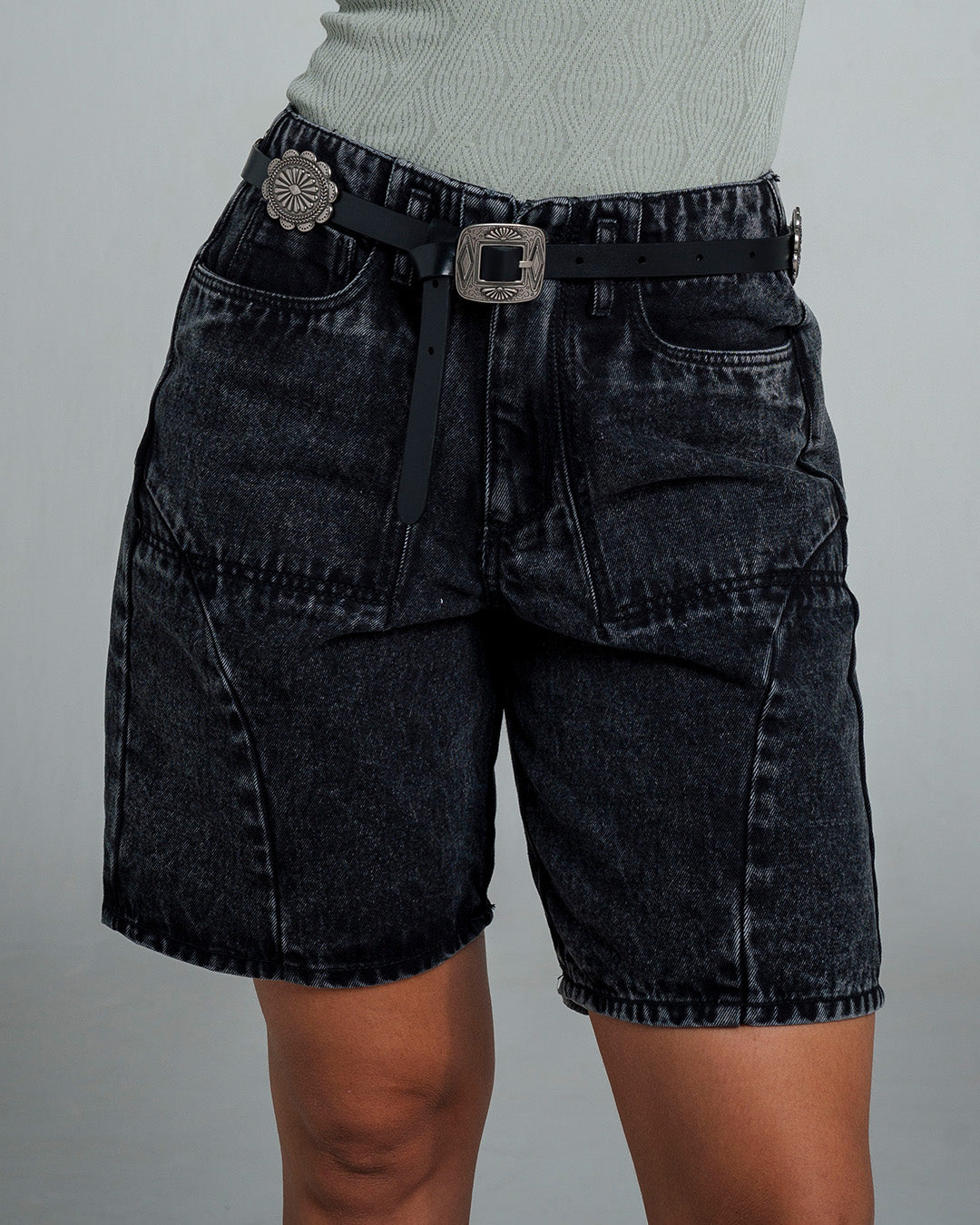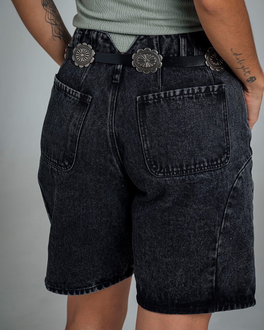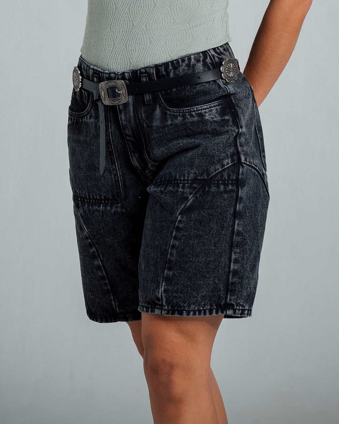 Dale un toque moderno y relajado a tus looks con esta bermuda denim black para mujer, confeccionada en una mezcla de algodón y poliéster que ofrece resistencia, suavidad y total comodidad. Su diseño de talle medio y silueta en tendencia la convierte en una prenda imprescindible para quienes aman el estilo urbano y funcional. Con cortes decorativos, bolsillos tipo parche y un detalle en V en la cintura posterior, esta bermuda combina perfectamente moda y confort. Su tono negro tipo denim es versátil y fácil de combinar con camisetas básicas, tops o blusas ligeras para lograr outfits con actitud. Ideal para fines de semana, eventos informales o para ir a la universidad, es una prenda pensada para acompañarte en tus días más activos, brindándote libertad de movimiento sin perder estilo.
