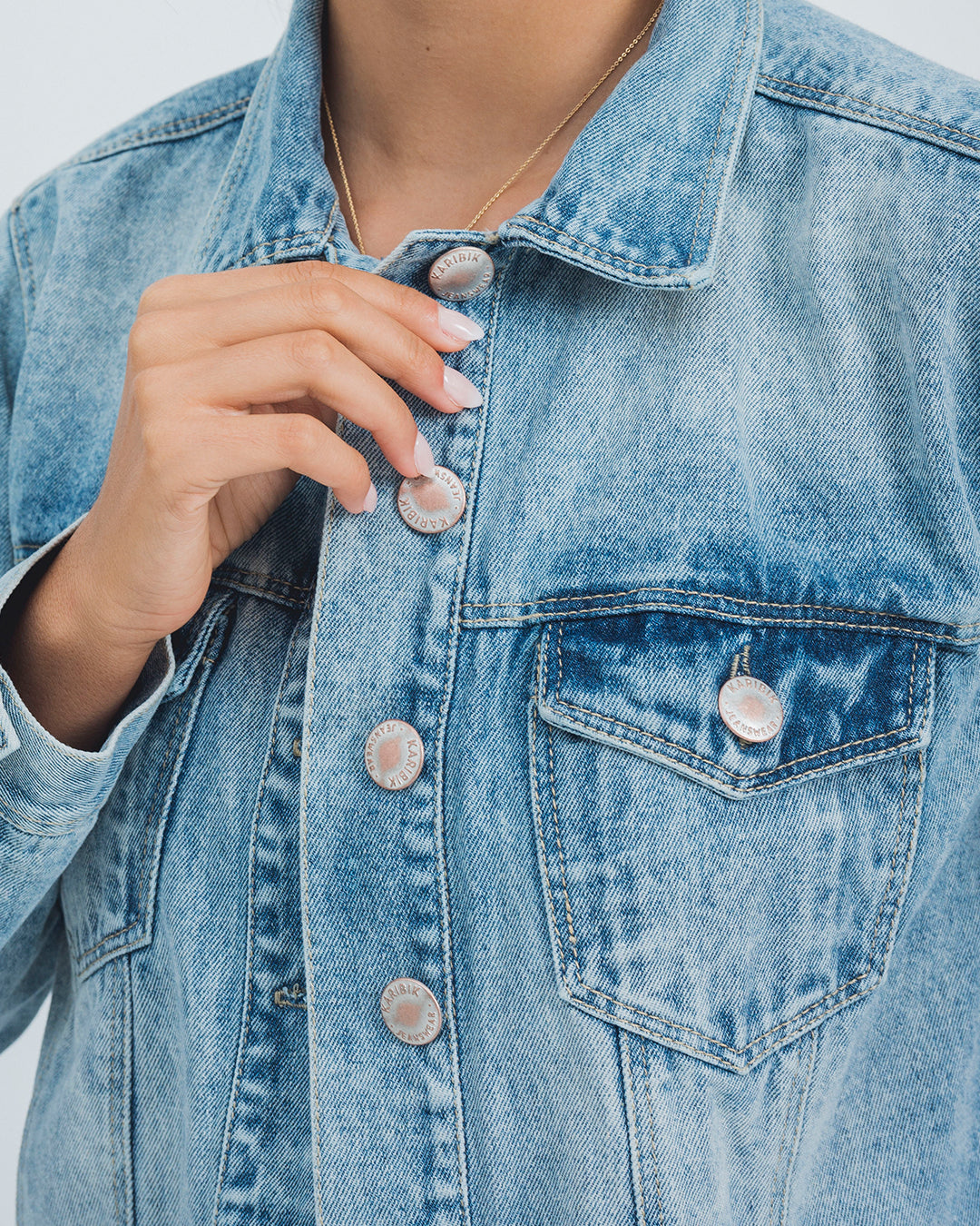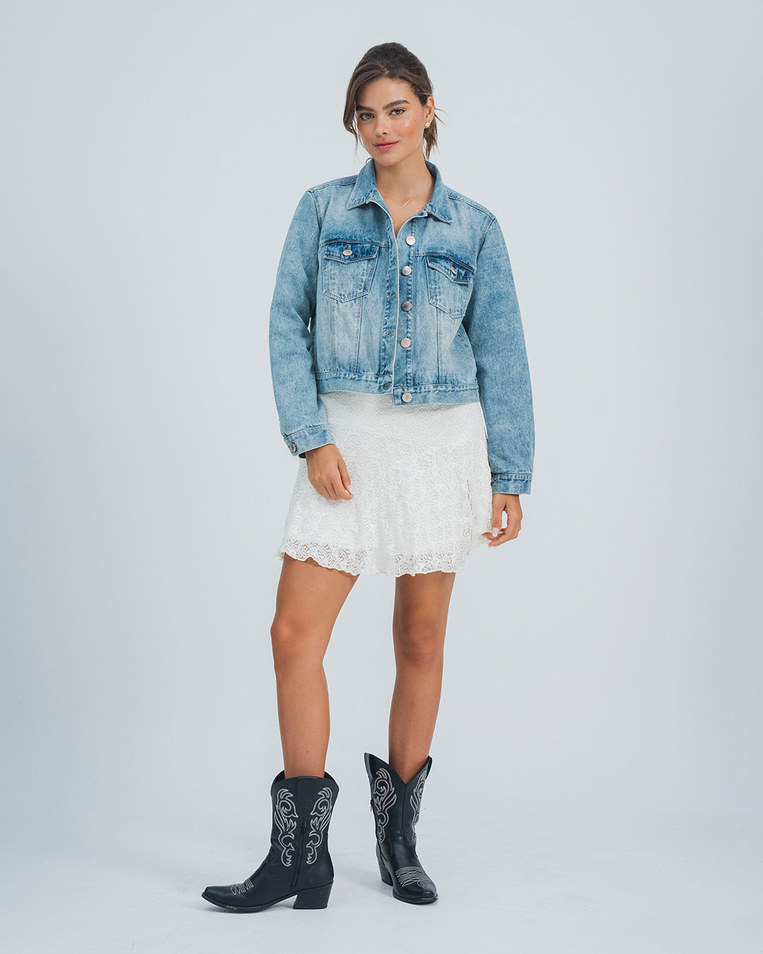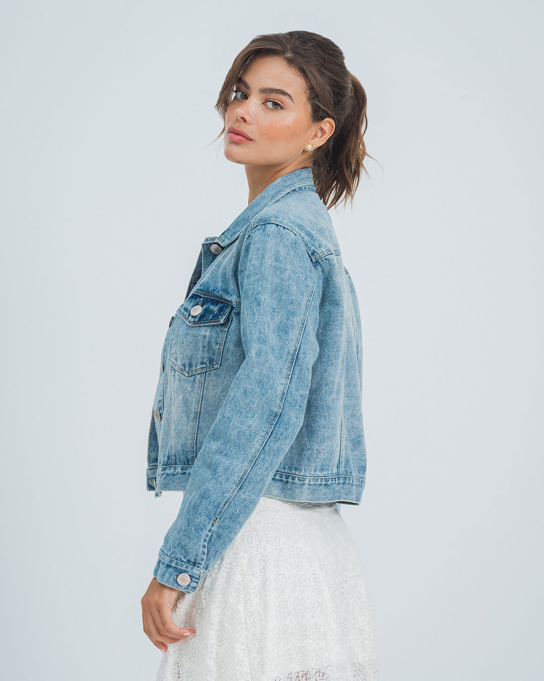Chaqueta denim clásica denim con proceso en lavandería, color azul.
