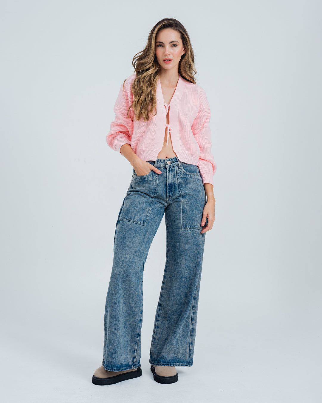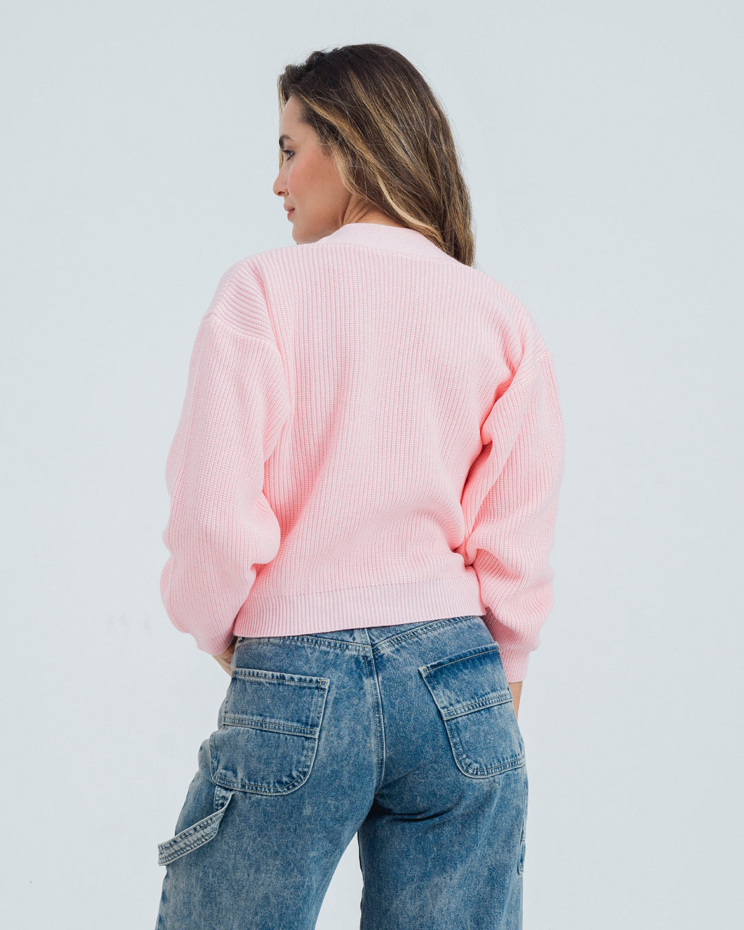 Suéter de punto 100 acrílico color marfil con escote en V Ropa de moda en Colombia Este suéter casual de silueta semi amplia es la opción perfecta para los días fríos, combinando estilo y comodidad en una sola prenda. Confeccionado en 100 acrílico, ofrece una textura suave y abrigadora que mantiene la calidez sin perder ligereza. Su diseño incluye escote en V que estiliza la figura, mangas largas que aportan protección contra el frío y dos amarres en el frente que añaden un toque moderno y femenino. En color rosado , se convierte en una pieza versátil que combina con jeans, faldas o pantalones para crear outfits casuales y sofisticados. Una prenda clave de la ropa de moda en Colombia para lucir elegante y abrigada en cualquier ocasión.